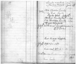 Roderick MacDiarmid Sn stock book of sheep on Newton hirsel, lambs marked 1937.